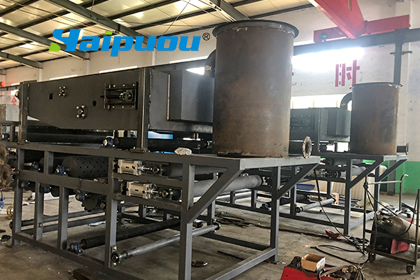 2、重力(li)脫(tuo)水段長,第一與第二重力(li)脫(tuo)水段總(zong)長5m多,使污(wu)泥(ni)在壓榨前(qian)充分脫(tuo)水失去流動性。同(tong)時,重力脫(tuo)水段還設(she)置反轉等特殊機構(gou),經(jing)“楔”形、“S”形壓榨等作用使污泥濾餅(bing)獲得低的含水量。